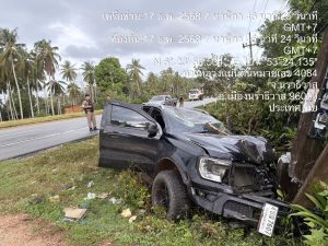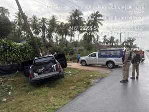 พร้อม ข่าย จราจร ตรวจสอบเหตุรถยนต์ตกข้างทางชนเสาไฟฟ้ามีผู้ได้รับบาดเจ็บ 2 ราย กู้ภัยนำส่งโรงพยาบาล มีทรัพย์สินทางราชการเสียหาย(เสาไฟ 1 ต้น)