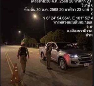 พร้อม ข่าย จราจร ปฎิบัติหน้าที่ ตรวจสอบบุคคลยานพาหนะเพื่อป้องกันอาชญากรรม กวดขันวินัยจราจรป้องกันอุบัติเหตุ ถนนแยกหน้า สภ.เก่า ต.กะลุวอเหนือ อ.เมือง จ.นราธิวาส
