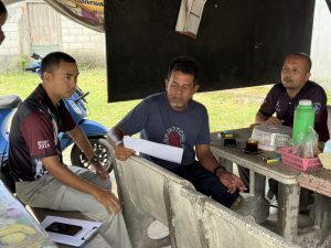 ชุด ตชส.สภ.ตันหยง พบปะผู้ใหญ่บ้านในเขตรับผิดชอบเพื่อประสานขอรายชื่อประชาชนเพื่อเข้าการอบรมในโครงการการสร้างเครือข่ายการมีส่วนร่วมของประชาชนในการป้องกันอาชญากรรมระดับตำบล เพื่อสนับสนุนการป้องกันอาชญากรรม ในเขต ต.กะลุวอเหนือ