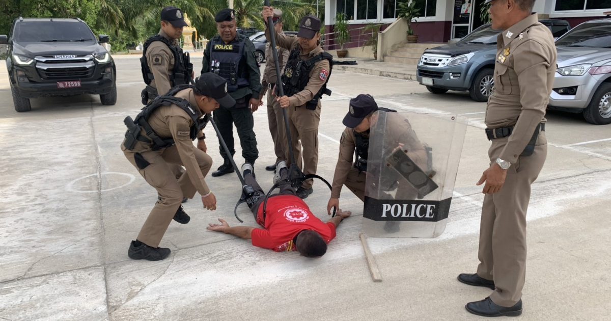 พร้อม ชป.เคลื่อนที่เร็ว ชุดที่ 4 ซักซ้อมแผนเผชิญเหตุ การระงับเหตุบุคคลคลุ้มคลั่ง โดยการใช้ไม้ง่ามไฟฟ้า