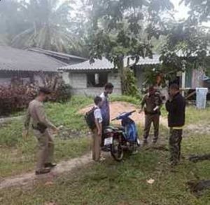 ร.ต.อ.วิวรรธร์ ภักดีรุจีรัตน์ รอง สว.(สอบสวน)สภ.ตันหยง ต.30 พร้อมข่าย จร. ตรวจสอบเหตุ รถ จยย.ชนกับ รถยนต์ ไม่มีผู้ใดได้รับบาดเจ็บ เหตุเกิด ในหมู่บ้านโคกสยา ม.8 ต.กะลุวอเหนือ