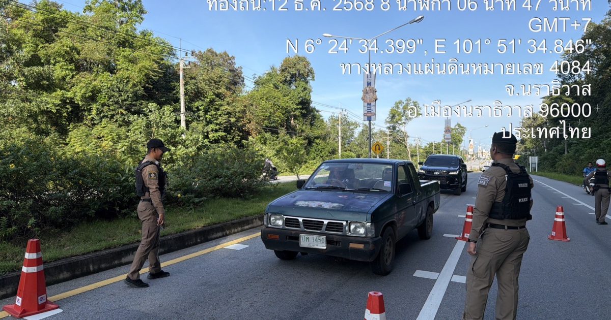 พร้อม ข่าย จราจร ปฎิบัติหน้าที่ ตั้ง จุดตรวจสอบบุคคลยานพาหนะเพื่อป้องกันอาชญากรรม กวดขันวินัยจราจรป้องกันอุบัติเหตุ ถนน4084 นราธิวาส-ตากใบ ต.กะลุวอเหนือ อ.เมือง จ.นราธิวาส