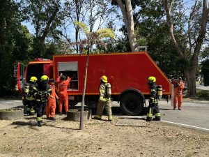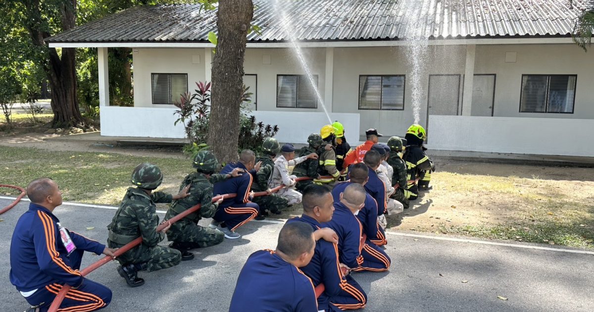 พ.ต.ต.ฤทธิชัย น้อยสุก สวป.สภ.ตันหยง พร้อม ชป.เคลื่อนที่เร็ว , ชป.จราจร ร่วมซักซ้อมแผนป้องกันอัคคีภัย