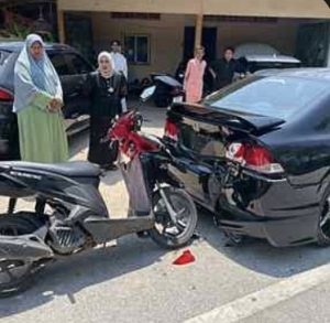พ.ต.ต.หญิง วัชริณี ดาราชาติ สว.(สอบสวน) สภ.ตันหยง พร้อม ข่าย จราจร ตรวจสอบเหตุ รถจักรยานยนต์ชนท้ายรถยนต์เก๋ง มีผู้บาดเจ็บเล็กน้อย1ราย ส่ง ร.พ.นราธิวาสราชนครินทร์ เหตุเกิดถนนบ้านค่าย