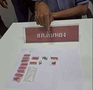 -พร้อมด้วยของกลาง ของกลางรายการที่1 ยาเสพติดให้โทษประเภท ๑ เมทแอมเฟตามีน (ยาบ้า) ชนิดเม็ดกลมแบนสีแดง มีอักษร WY ประทับบนตัวยาด้านหนึ่งอีกด้านหนึ่งผิวเรียบ แยกบรรจุอยู่ในถุงพลาสติกใสปิดผนึกหัวท้ายด้วยความร้อน จำนวน 2 ถุง ถุงที่1 จำนวน 10 เม็ด ถุงที่2 จำนวน 5 เม็ด รวมยาบ้า 15 เม็ด ของกลางรายการที่2 ยาเสพติดให้โทษประเภท ๑ เมทแอมเฟตามีน (ยาบ้า) ชนิดเม็ดกลมแบนสีแดง มีอักษร WY ประทับบนตัวยาด้านหนึ่งอีกด้านหนึ่งผิวเรียบ บรรจุอยู่ในถุงพลาสติกใสปิดผนึกด้วยความร้อนเรียงชิดติดกัน บรรจุอยู่ในถุงพลาสติกใสแบบกดปิดเลื่อนเปิดอีกชั้นหนึ่ง จำนวน 80 เม็ด ของกลางรายการที่3 ยาเสพติดให้โทษประเภท ๑ เมทแอมเฟตามีน (ยาบ้า) ชนิดเม็ดกลมแบนสีแดง มีอักษร WY ประทับบนตัวยาด้านหนึ่งอีกด้านหนึ่งผิวเรียบ แยกบรรจุอยู่ถุงพลาสติกใสปิดผนึกหัวท้ายด้วยความร้อน จำนวน 2 ถุง ถุงที่1 จำนวน 10 เม็ด ถุงที่2 จำนวน 9 เม็ด และยาเสพติดให้โทษประเภท ๑ เมทแอมเฟตามีน (ยาบ้า) ชนิดเม็ดกลมแบนสีเขียว มีอักษร WY ประทับบนตัวยาด้านหนึ่งอีกด้านหนึ่งผิวเรียบ จำนวน 1 เม็ด รวมยาบ้า 20 เม็ด ของกลางรายการที่4 ยาเสพติดให้โทษประเภท ๑ เมทแอมเฟตามีน (ยาบ้า) ชนิดเม็ดกลมแบนสีเขียว มีอักษร WY ประทับบนตัวยาด้านหนึ่งอีกด้านหนึ่งผิวเรียบ แยกบรรจุอยู่ในถุงพลาสติกสีใสปิดผนึกหัวท้ายด้วยความร้อน จำนวน 2 ถุง ถุงที่1 จำนวน 8 เม็ด ถุงที่2 จำนวน 3 เม็ด รวมยาบ้า 11 เม็ด รวมยาบ้าทั้งหมดจำนวน 126 เม็ด