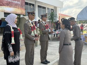 ข้าราชการตำรวจสภ.ตันหยง ร่วม พิธีรับ-ส่งมอบ หน้าที่ราชการ พ.ต.อ.ภัควัฒน์ วันสนุก ผกก.สภ.ตากใบ ส่งมอบ ว่าที่ พ.ต.อ.จารุกิตติ์ ศรีเดช ดำรงตำแหน่ง ผกก.สภ.ตันหยง ในโอกาสเปลี่ยนหน้าที่วาระปี 2568