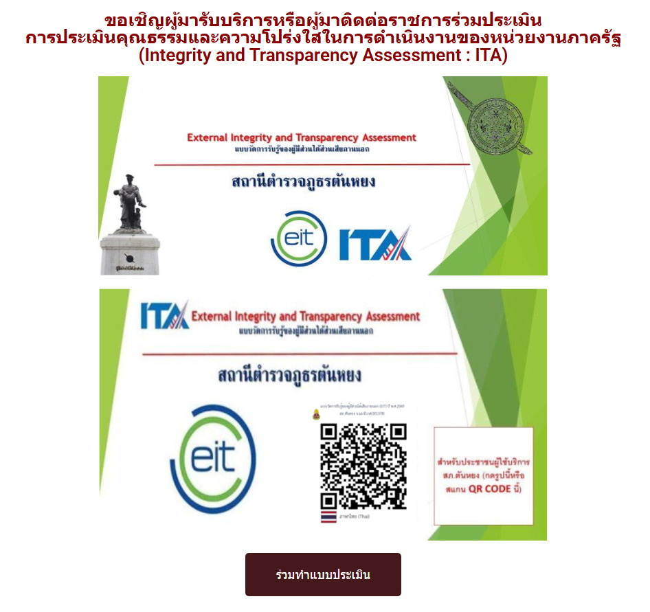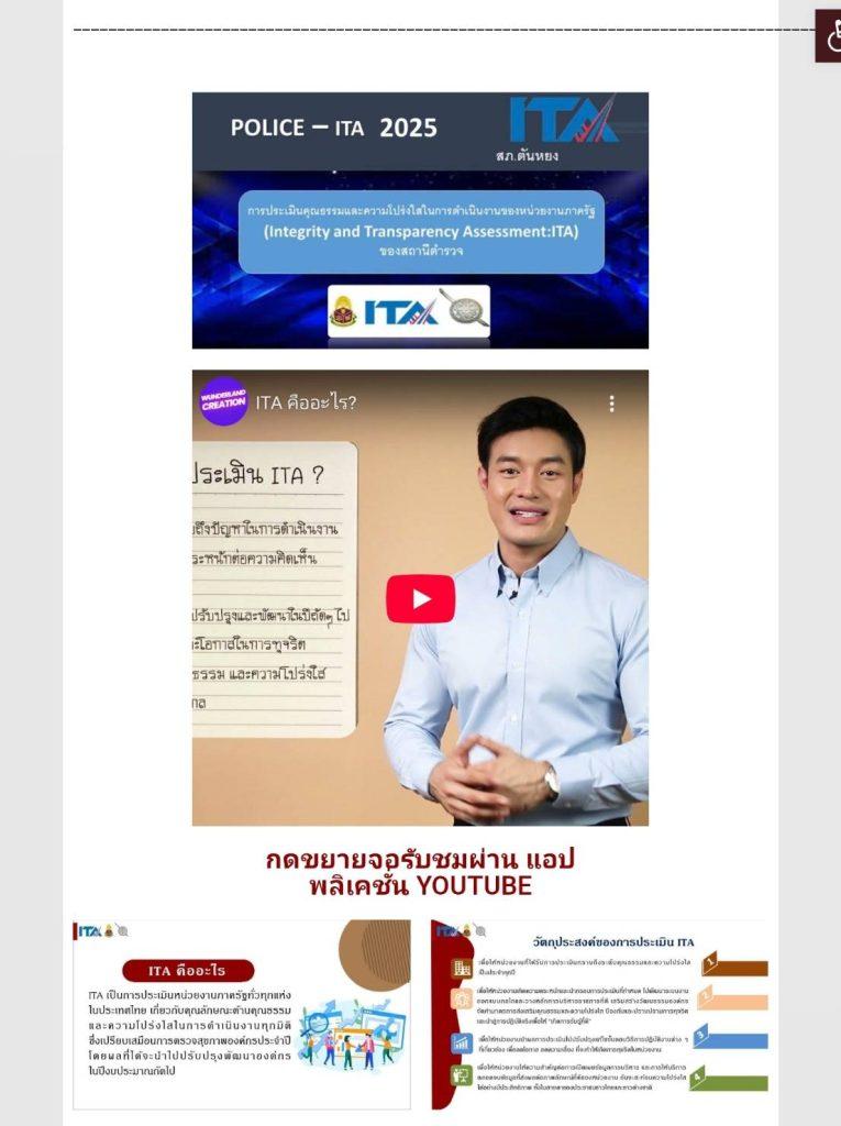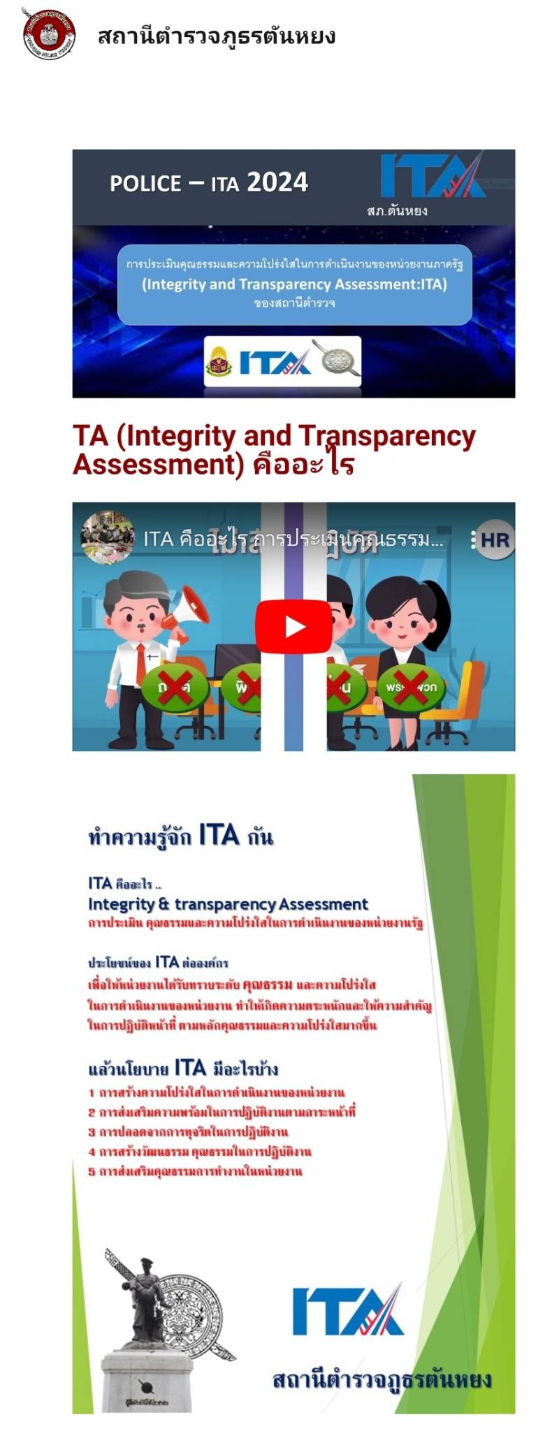 การประชาสัมพันธ์ข้อมูลการประเมินคุณธรรมและความโปร่งใสในการดำเนินงานของหน่วยงาน ภาครัฐ (Integrity and Transparency Assessment : ITA ) ของสถานีตำรวจ ประจำปีงบประมาณ พ.ศ.2569